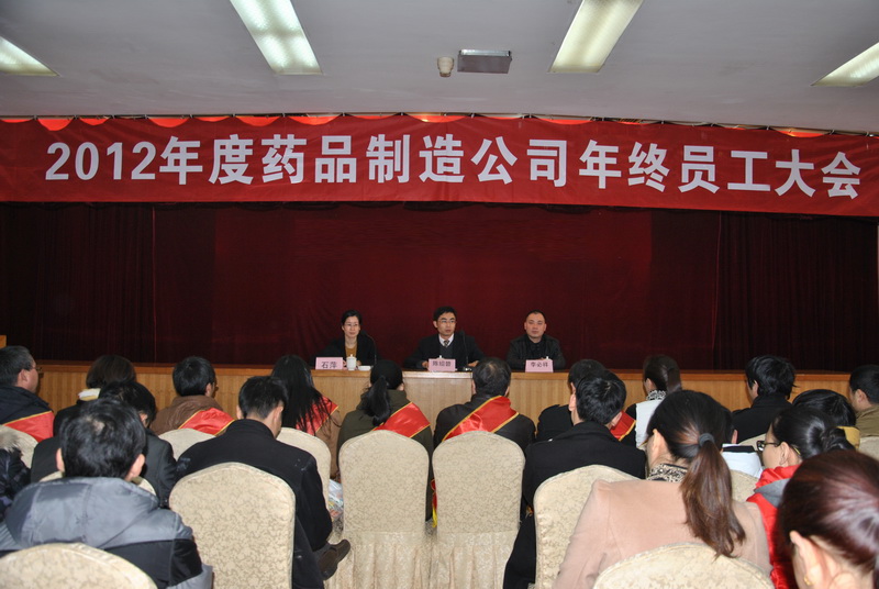 2013年1月26日下午,藥品制造公司全體員工在新昌賓館二樓召開2012年度表彰大會。會議由綜合辦主任石萍主持。