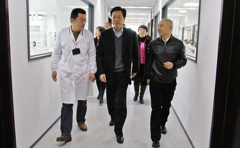 3月14日,縣政協主席羅國安一行蒞臨公司調研指導工作。羅主席參觀考察了公司研究院分析所等部門工作情況,并饒有興致地察看了廠區藥品制造車間。