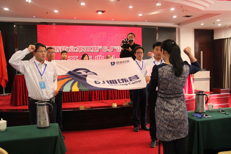 4月14日下午,公司第五期6J訓練營開營典禮在鶴群大酒店天姥廳召開,公司總經理王能能、常務副總經理金志平、人力資源總監周曉峰、藥品制造公司總經理陳紹碧及訓練營合作機構量子大學總經理姜麗敏、首席運營官沈俊鋒出席了本次典禮。